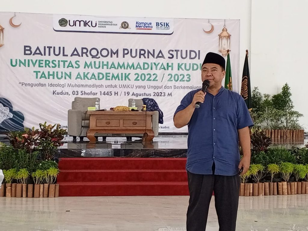 Kudus(22/8/23)Badan Studi Al Islam dan Kemuhammadiyahan Universitas Muhammadiyah Kudus menyelenggarakan kegitan Baitul Arqam Purna Studi bagi mahasiswa. Kegiatan ini wajib diikuti oleh mahasiswa UMKU yang akan menyandang gelar sarjana maupun diploma.