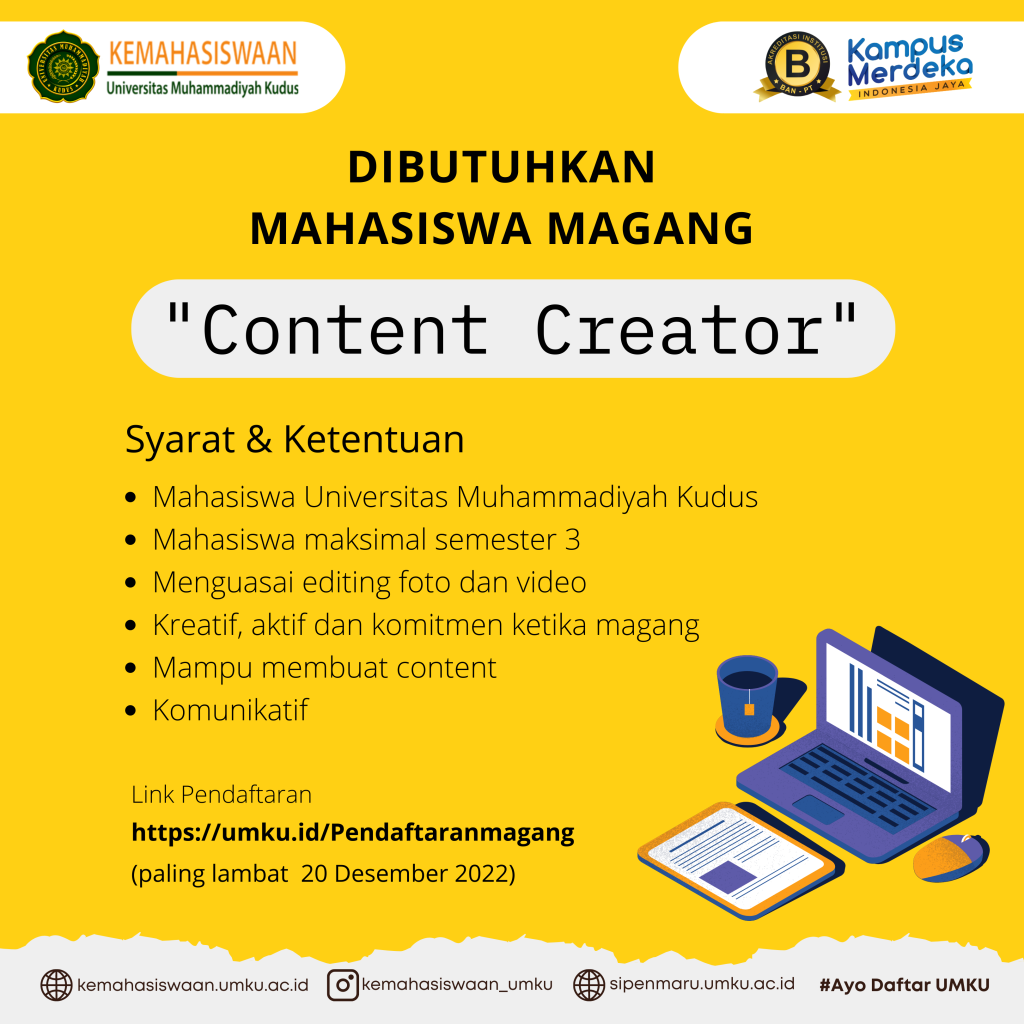 “DIBUTUHKAN MAHASISWA MAGANG CONTENT CREATOR” 📷💻