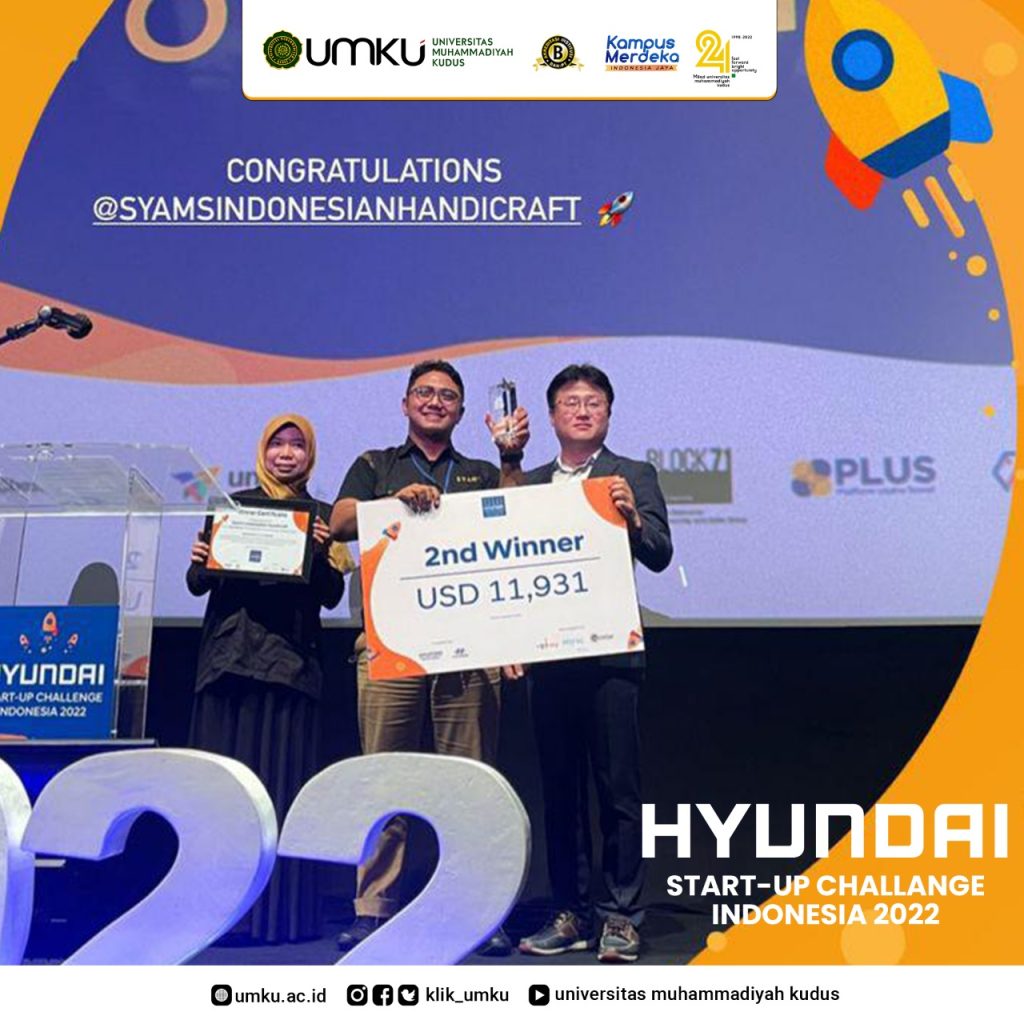 Tampil di panggung kehormatan dosen Universitas Muhammadiyah Kudus berhasil raih prestasi tingkat nasional, bergengsi tapi juga langka. Syahrial Aman, S.T, M.T. yang juga sebagai sekretaris Prodi Teknik Industri UMKU mampu berbicara banyak dalam even social enterprise. Berlangsung di Epicentrum Kuningan Jakarta Syahrial Aman sebagai CEO dan Founder Syam’s Handicraft berhasil mendapatkan USD 14.931 (25/11/22).