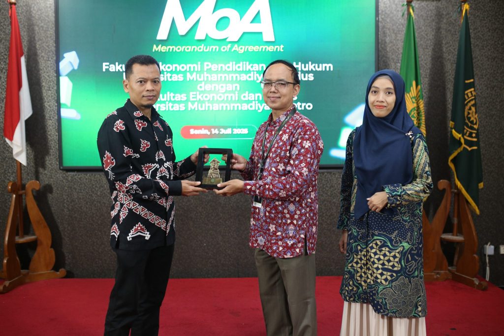 Kudus – Fakultas Ekonomi dan Bisnis Universitas Muhammadiyah Metro (UM Metro) menjalin kerja sama kelembagaan dengan Fakultas Ekonomi, Pendidikan dan Hukum Universitas Muhammadiyah Kudus (UMKU) melalui penandatanganan Memorandum of Agreement (MoA) yang dilaksanakan pada Senin (14 Juli 2025) di kampus 1 UMKU Jalan Ganesha 1 Purwosari Kudus.