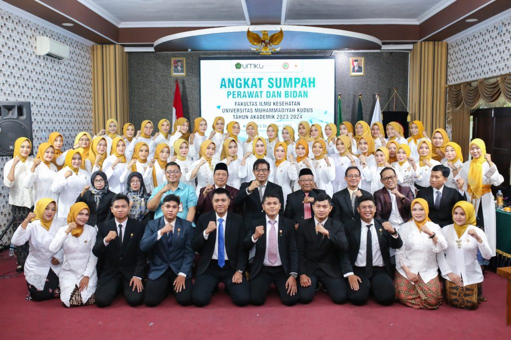 Fakultas Kesehatan Universitas Muhammadiyah Kudus(UMKU) kembali selenggarakan angkat sumpah profesi pada Rabu, 13 Desember 2023. Peserta angkat sumpah terdiri dari 6 program studi D3 Keperawatanm, 1 Prodi D3 Kebidanan, dan 183 Ners.