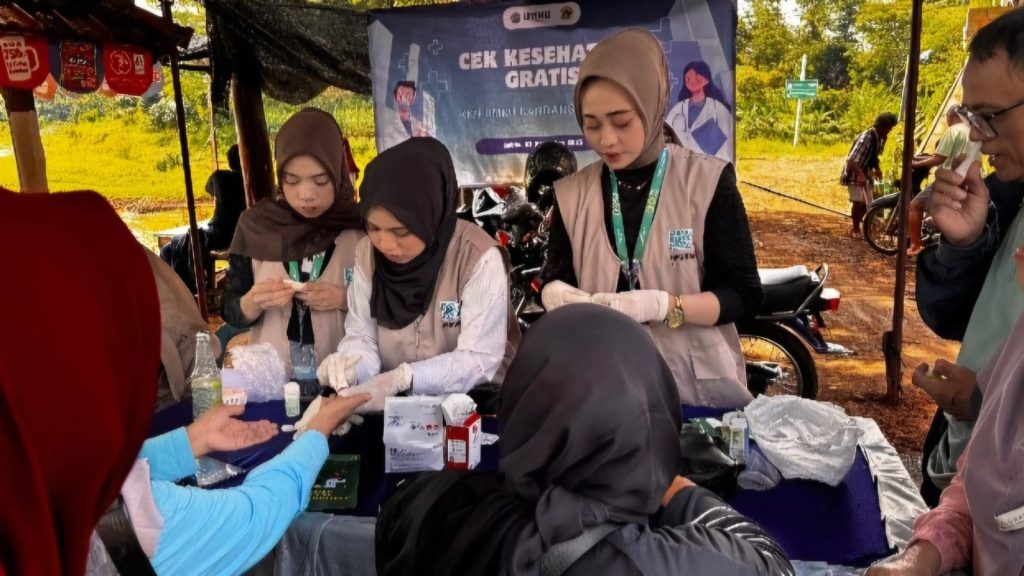 KUDUS — Mahasiswa Kuliah Kerja Nyata (KKN) Universitas Muhammadiyah Kudus (UMKU) Kelompok 17 menyelenggarakan kegiatan Cek Kesehatan Gratis bagi masyarakat umum yang sedang berwisata ke Waduk Logung di Desa Kandangmas, Kecamatan Dawe, Kabupaten Kudus pada Sabtu, 27 Desember 2025.