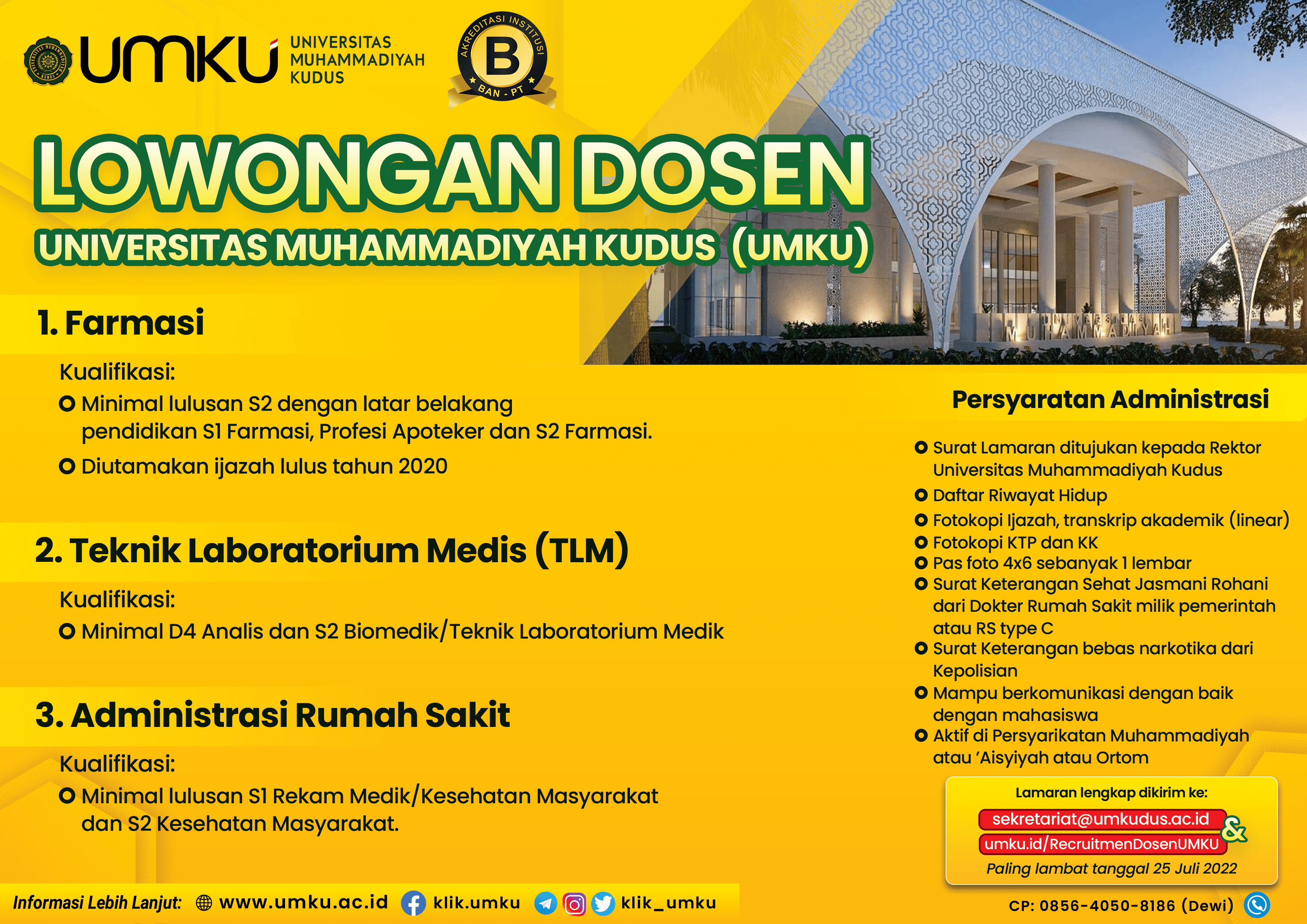 Adapun lamaran tersebut dapat dikumpulkan ke Universitas Muhammadiyah Kudus paling lambat