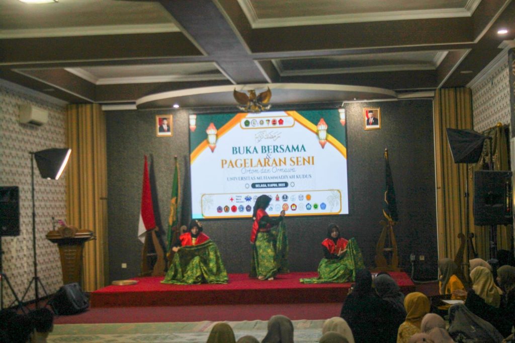 Kudus(11/4) Organisasi mahasiswa UMKU melakukan serangkaian kegiatan meriahkan bulan Ramadhan 1444 H. Kegiatan yang dilakukan diantaranya bagi takjil gratis, lomba short movie, dan pentas seni mahasiswa. Kegitan pentas seni dibuka langsung oleh Wakil Rektor 3 UMKU Anny Rosiana M, Ns., M.Kep., Sp.Kep J. Dalam sambutannya beliau mengapresiasi kegiatan pentas seni dan pesankan nilai positif. “Apresiasi untuk ormawa yang sudah mengkonsep kegiatan ini dengan baik, acara seperti ini merupakan bagian dari khasanah yang wajib dikembangkan, mahasiswa tidak hanya konsen dalam bidang akademik melainkan juga perlu kreativitas seperti ini” ungkapnya.