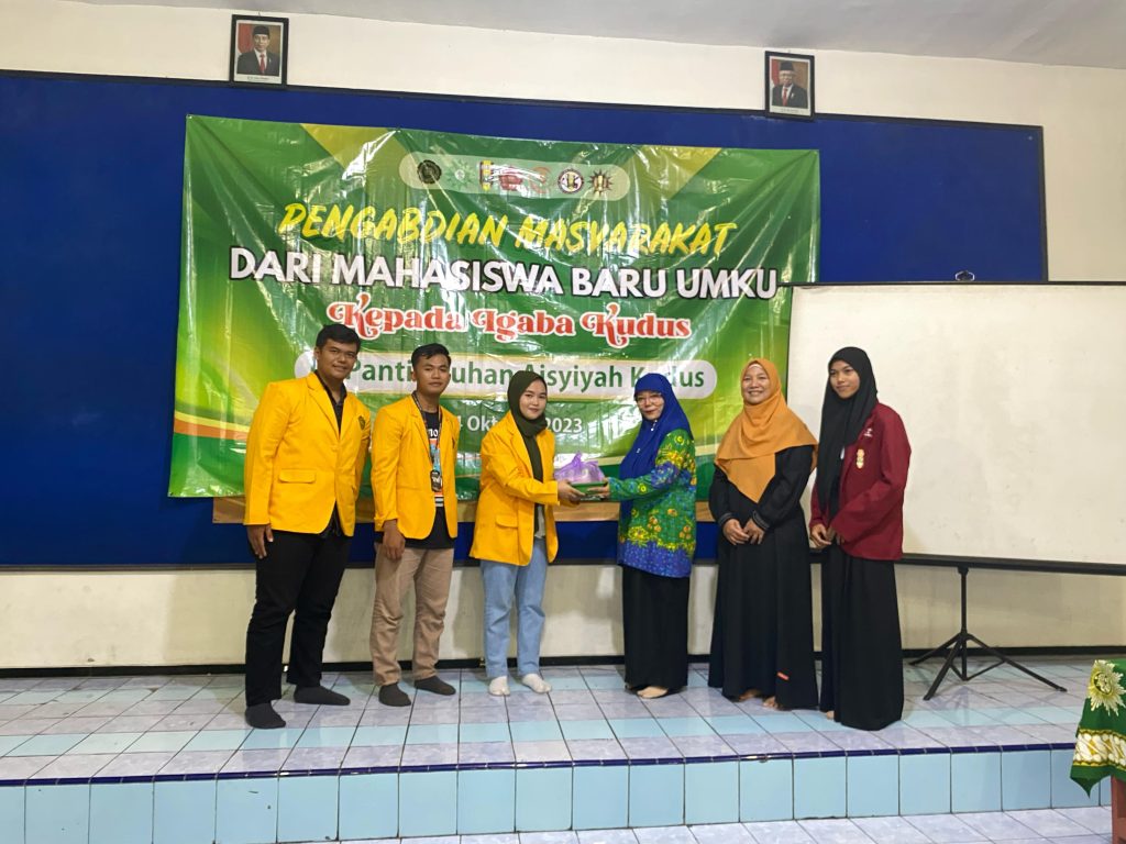 Kudus(23/10)Ormawa (Organisasi Mahasiswa BEM dan IMM) Universitas Muhammadiyah Kudus melaksanakan kegiatan bakti sosial berupa pembagian gula dan minyak kepada IGABA Kudus (Ikatan Guru TK Aisyiyah Bustanul Atfal). Penyerahan dilaksanakan secara langsung di Panti Asuhan Aisyiyah Kudus yang ada di Jalan Kudus-Jepara 1, RT. 02 RW. 03, Prambatan Kidul, Kaliwungu, Kabupaten Kudus