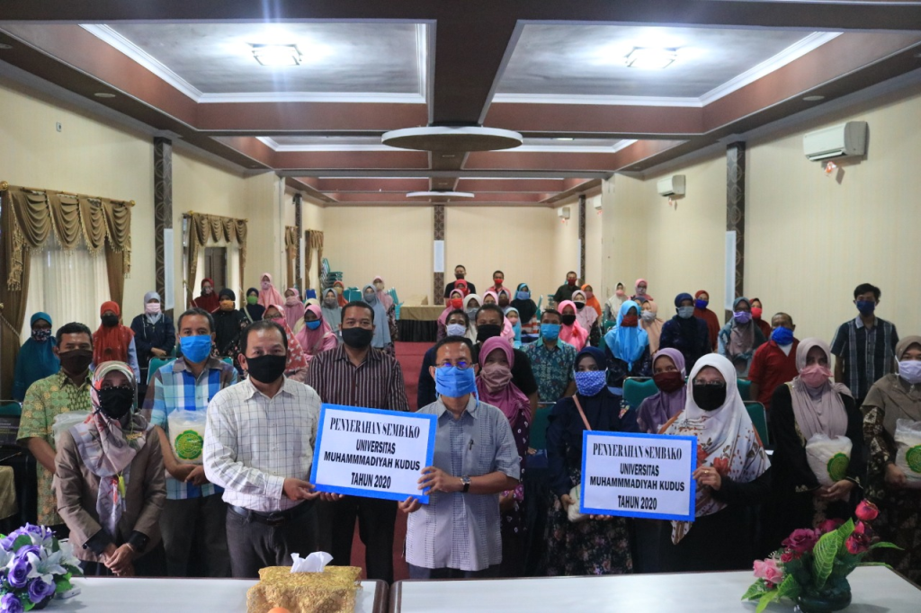 Rusnoto, SKM., M.Kes Rektor Universitas Muhammadiyah Kudus (UMKU) menyampaikan “Paket ini diberikan kepada masyarakat karena dampak pandemic Covid-19 yang berpengaruh kepada segala aspek terutama ekonomi”. Kami lebih utamakan pemberian ini kepada guru atas bhakti dan pengabdiannya di Pendidikan, dan kami khususkan bagi warga yang dekat dengan kampus, paket ini diberikan untuk meringankan beban menjelang bulan Ramadhan” Jelasnya.