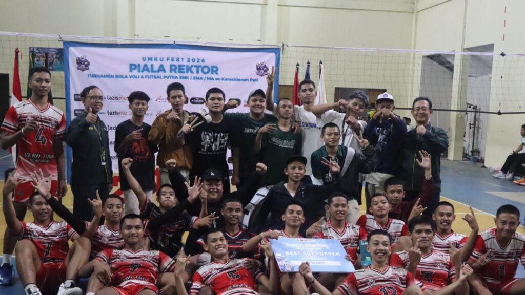 KUDUS — Piala Rektor UMKU FEST cabang olahraga voli putra tingkat SMA/SMK/MA se-Karesidenan Pati tahun 2026 sukses dilaksanakan. SMK NU Ma’arif Kudus berhasil menjadi Juara I setelah mengalahkan SMA NU Al Ma’ruf Kudus dalam 3 gim langsung di laga final dengan skor 27-25, 25-17, 25-22.