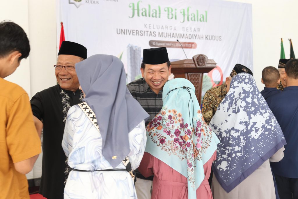 Universitas Muhammadiyah Kudus menggelar acara Halal Bihalal yang diikuti oleh badan pengurus harian UMKU, rektor beserta jajaran pimpinan, dosen, tenaga pendidik, dan seluruh karyawan pada hari Minggu, (30/5/23). Bertempat di ruang Convention Hall Gedung Crystal Buildiung Universitas Muhammadiyah Kudus acara Halal Bihalal digelar sebagai sarana silaturahmi keluarga besar Universitas Muhammadiyah Kudus (UMKU).