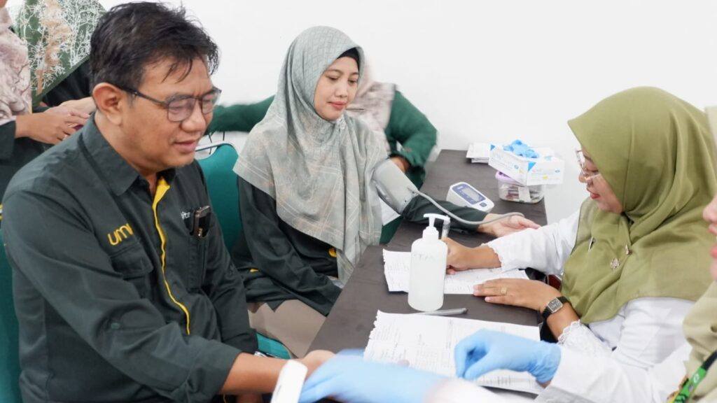 KUDUS — Sebagai upaya meningkatkan kesejahteraan pegawai di bidang kesehatan, Universitas Muhammadiyah Kudus (UMKU) melakukan skrining kesehatan kepada seluruh dosen maupun tenaga kependidikan (Tendik) pada Kamis, 9 April 2026.