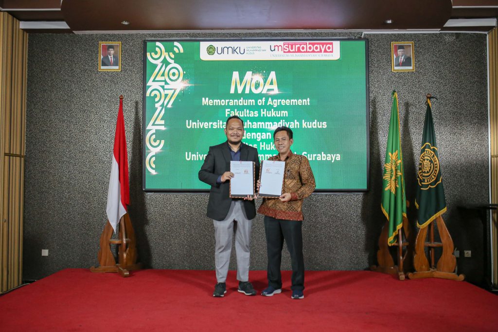 Berlangsung seremonial di ruang Serbaguna kampus satu Jln Ganesha 1 Purwosari, Kudus, Universitas Muhammadiyah Suarabaya sepakati kerja sama Catur Dharma dengan Universitas Muhammadiyah Kudus.
