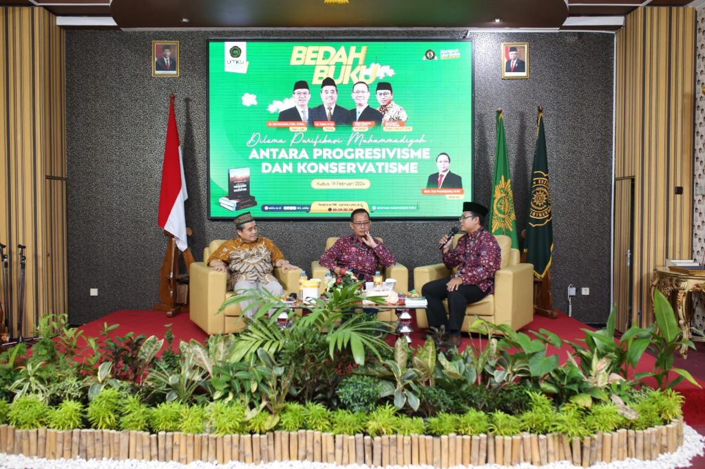 Nuansa keilmuan terasa di ruang Serbaguna kampus 1 Universitas Muhammadiyah Kudus pada Senin 20 Februari 2024. Sekitar 150 peserta terdiri dari dosen dan mahasiswa memenuhi acara bedah buku yang berjudul “Dilema Purifikasi Muhammadiyah antara Progresivisme dan Konservatisme.