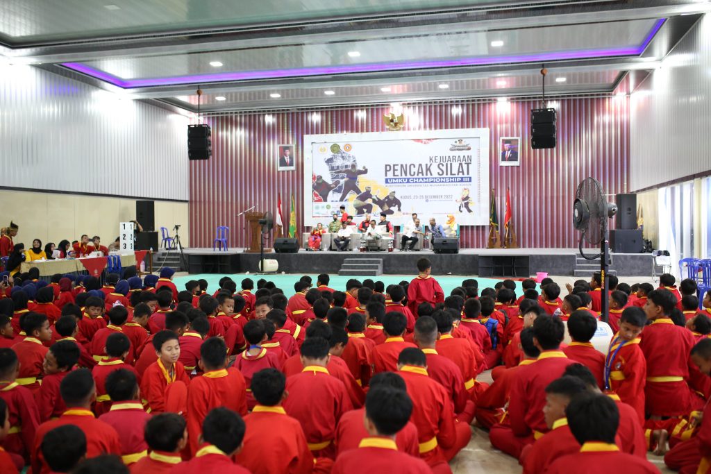 Pertandingan ini dibuka langsung oleh Wakil Rektor II Rizka Himawan, S.Psi., M.Psi dalam sambutannya, beliau menekankan keseriusan UMKU dalam mengembangan atlet-atlet berbakat. “Tahun ini merupakan tahun ke 3 UMKU menyelenggarakan kejuaran pencak silat tingkat provinsi, koloborasi dengan Pimda TS 157 Kudus semoga terus terjalin dengan terus melanjutkan kompetensi yang sama di tahun mendatang, tentu dengan skala kuantitas dan kualitas yang lebih besar lagi” ujarnya. Ia berharap output yang muncul nantinya dapat menghasilkan atlet-atlet yang siap mentas di kejuaraan tingkat nasional. Selain itu, ia juga menegaskan bahwa UMKU siap memberikan beasiswa bagi atlet SMA/SMK/MA yang berhasil meraih podium kejuaraan pada event UMKU CUP III.