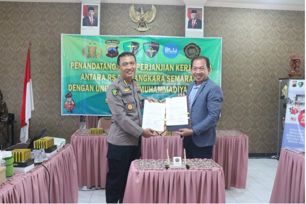 Kudus (2/3) Universitas Muhammadiyah Kudus dan RS Bhayangkara Semarang sepakat jalin kerja sama. Kedua institusi ini bersepakat kerja sama perluas jejaring peningkatan Sumber Daya Manusia melaui program Tri Dharma Perguruan Tinggi.