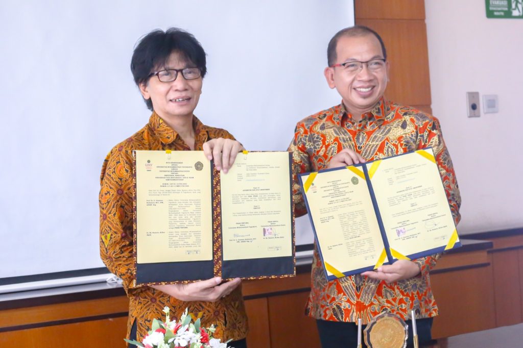Bertempat di Gedung AR. Fachruddin A lantai 5 Universitas Muhammadiyah Yogyakarta (4/8), Universitas Muhammadiyah Kudus (UMKU) dan Universitas Muhammadiyah Yogyakarta (UMY) sepakat menjalin kerja sama. Rektor UMKU Dr. Ns Rusnoto, M.Kes (Epid) dan Rektor UMY Prof. Dr. Ir. Gunawan Budiyanto, M.P., ipm., ASEAN Eng tandatangani langsung MOU.