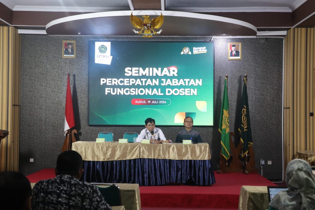 Kudus, 22 Juli 2024 – Universitas Muhammadiyah Kudus (UMKU) mengadakan seminar bertajuk Percepatan Jabatan Fungsional Dosen. Kegiatan yang diinisiasi Sumber Daya Insai UMKU ini bertujuan untuk memberikan pemahaman mendalam tentang mekanisme dan strategi percepatan kenaikan jabatan fungsional bagi dosen.