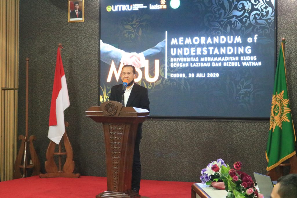 Kali ini Universitas Muhammadiyah Kudus melakukan penandatanganan MoU kerjasama dalam hal Tridharma dengan Kwartir Daerah Hizbul Wathan Kudus pada Senin, 20 Juli 2020 JAM 13.00 – 15.00 di ruang Serbaguna UMKU. Acara penandatangan MoU ini digelar sesuai protokol kesehatan dan dihadiri oleh Ketua BPH Drs. H. Sajad, M.Pd, Rektor UMKU Rusnoto M.Kes.,SKM (Epid), Wakil Rektor I Noor Hidayah, M.Kes , Wakil Rektor II Rizka Himawan, M.Psi , Wakil Rektor III Anny Rosiana Masitoh, M.Kep.Sp.Kep.J , Dekan Fakultas Ekodikhum dan FSTM Purnomo, M.H.Kes, Wakil Dekan Ekodikhum dan FSTM Dewi Hartinah.,M.Si.,Med, Direktorat Kemahasiswaan Noor Azizah, M.Kes, Urusan Kemahasiswaan Sri Karyati, M.Kep.,Ms.,Sp.Kep.Mat dan Janu Arlinwibowo, M.Pd, Ketua HW Kudus Rusydal Hakim, S.Pd, , Senen Budiarto, M.Pd, Arianto, S.Pd serta Ketua Program Studi PGSD, Matematika, Akuntansi, Ekonomi Syari’ah, Sistem Informasi dan Hukum.