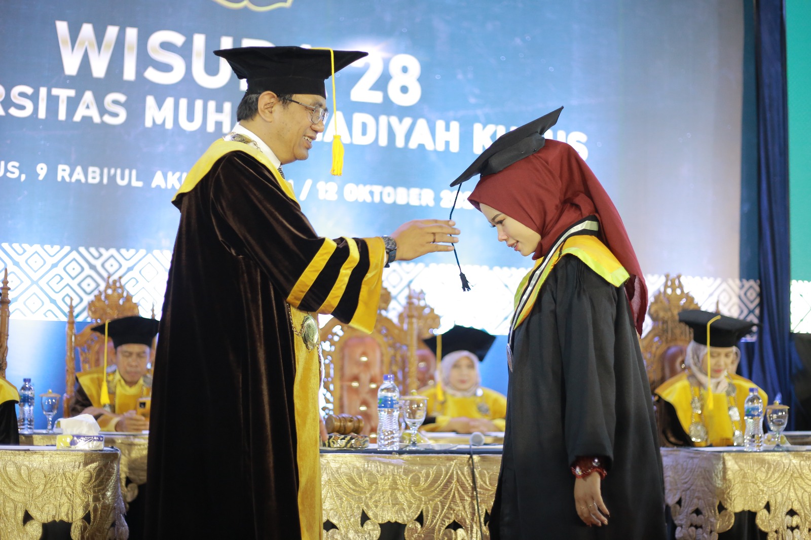 Kudus, 11 Oktober 2024 – Universitas Muhammadiyah Kudus (UMKU) menggelar acara wisuda ke-28. Sebanyak 559 mahasiswa dari berbagai program studi resmi diwisuda. Acara yang berlangsung di Gedung Crystal Building kai ini berjalan dengan suasana khidmat dan penuh kegembiraan.