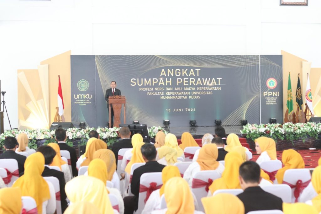 Universitas Muhammadiyah Kudus kembali luluskan 120 profesi ners dan 3 Ahli Madya Keperawatan. Prosesi angakt sumpah dilangsungkan di ruang Convention Hall Gedung Crystal Building UMKU pada Kamis 15 Juni 2023.